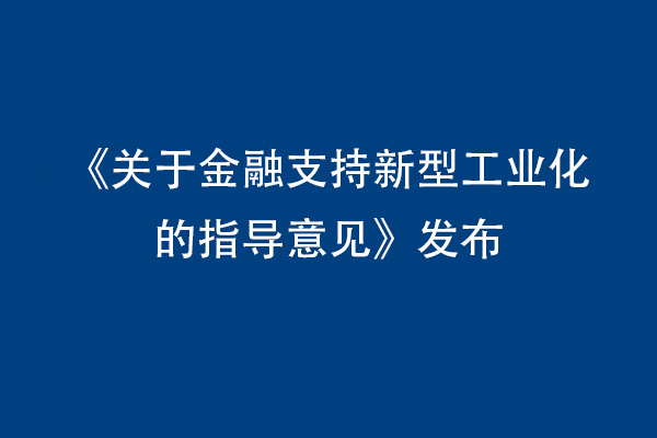 《關(guān)于金融支持新型工業(yè)化的指導(dǎo)意見》發(fā)布